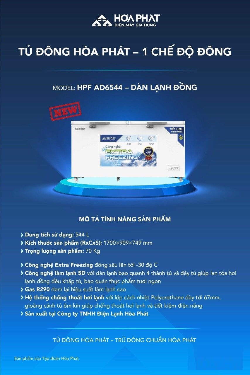1 Tủ đông dung tích lớn 600L Hòa Phát 1 ngăn 2 cánh HPF AD6544