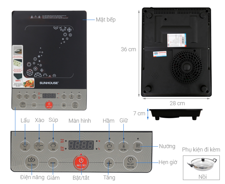 Bếp sử dụng bảng điều khiển cơ/nút nhấn điện tử với các phím chức năng bằng tiếng Việt rõ ràng, dễ hiểu. 6 chế độ nấu cài đặt sẵn vô cùng tiện dụng gồm: lẩu, xào, súp, hầm, giữ ấm, nướng. Thoải mái chế biến các món ăn phong phú đa dạng với thao tác đơn giản, nhanh chóng. Màn hình led hiển thị thông số chi tiết, chính xác dễ dàng quan sát và điều chỉnh theo nhu cầu.