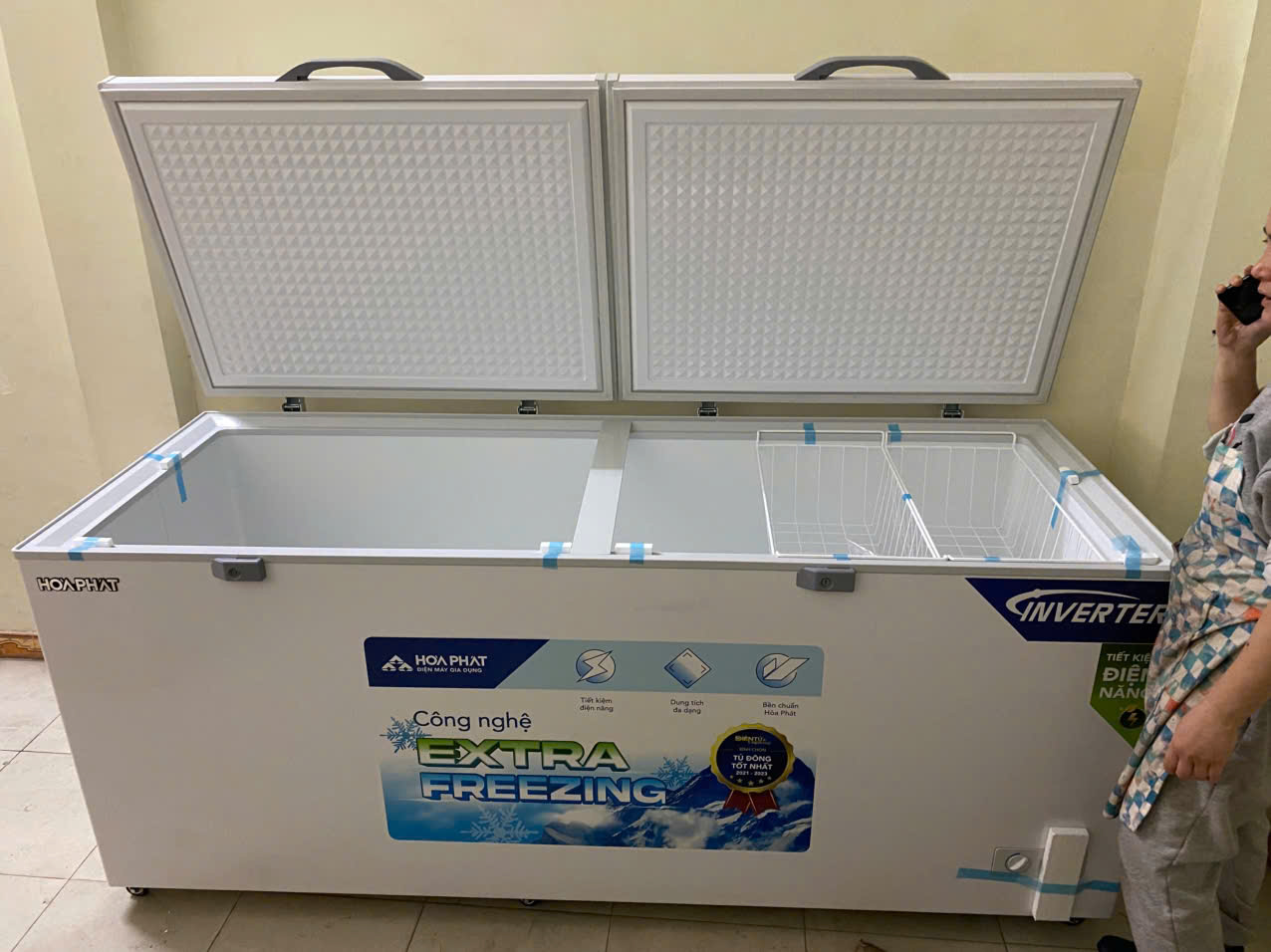 Tủ đông Hòa Phát dung tích lớn 1 ngăn 2 cánh HPF AD6783 sở hữu công nghệ Extra Freezing đông sâu tới -30 độ C, dàn máy nén khoẻ và hệ thống chống thoát hơi lạnh với lớp bảo ôn dày 67mm