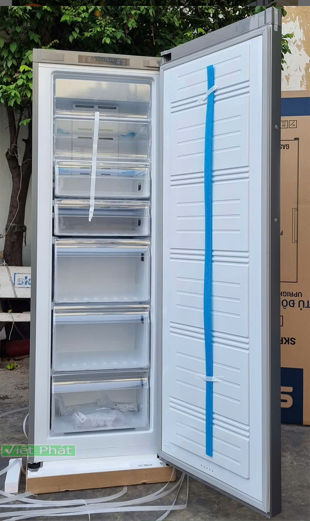 Với thiết kế tủ đứng cùng nhiều ngăn nhỏ xếp chồng để mở rộng không gian lưu trữ thực phẩm mà không chiếm nhiều diện tích sàn, đặc biệt thích hợp sử dụng kết hợp với tủ lạnh cho hộ gia đình từ 4 thành viên.