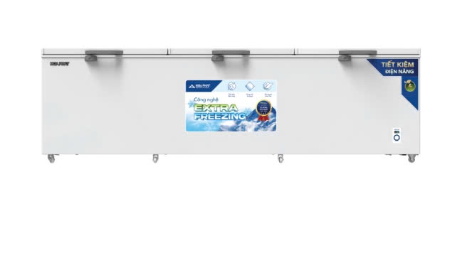 Tủ đông Hòa Phát dung tích lớn 1 ngăn 3 cánh HPF AD61190.1 sở hữu công nghệ Extra Freezing đông sâu tới -30 độ C, dàn máy nén khoẻ và hệ thống chống thoát hơi lạnh với lớp bảo ôn dày 67mm