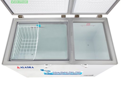 - Tủ Đông Alaska BCD-6567N có tông mầu trắng sang trọng, thiết kế hiện đại với 2 nắp mở tiện lợi dễ sắp xếp phân loại sản phẩm.