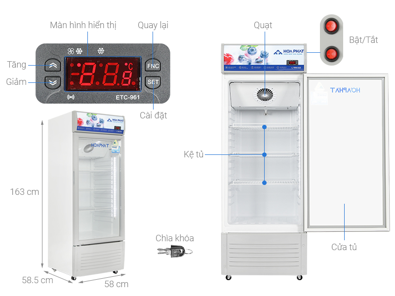 Tủ mát Hòa Phát 1 cánh HSR D6195 500L Dàn đồng